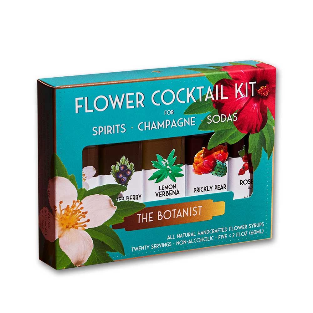 Enjoy this collection of adventurous and unique flower syrups! This Flower Cocktail Kit includes 5 syrups in 2 oz glass bottles and has at least 20 servings with illustrated recipes on the back of each box. All Natural. 100% Gluten Free. 100% Vegan. Woman-owned, handmade in the USA in small batches. 100% recyclable packaging and reusable glass bottles. • All Natural & Organic